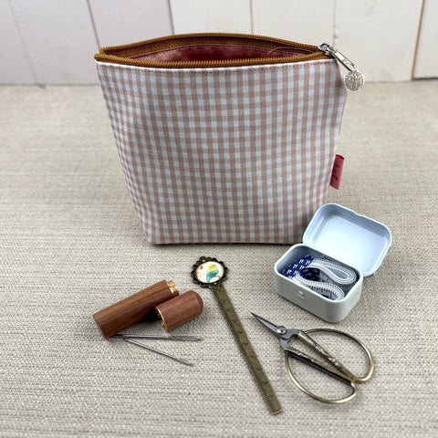 The smart little Accessory Purses are made from a high quality linen fabric in either a contemporary striped or pale terracottta check design. They have coordinated satin lining and close at the top with a quality zip fastener.
